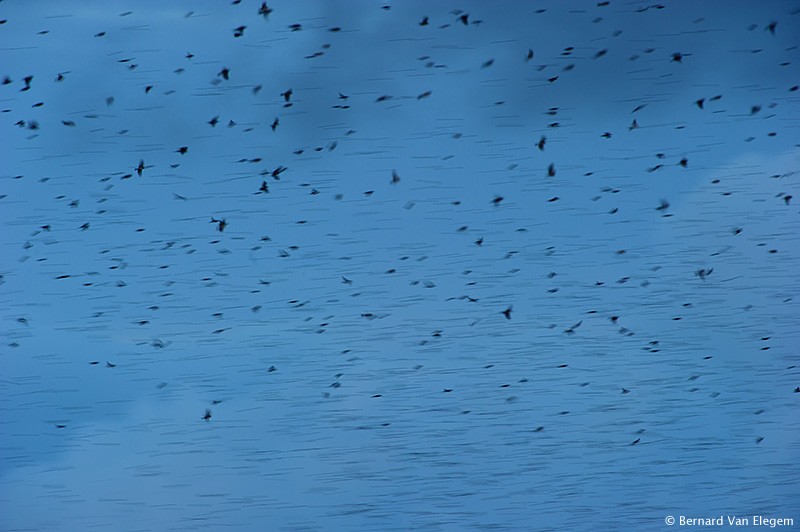 In years of cyclic abundance following successful breeding seasons, huge numbers of Bramblings move over wide areas within West, Central and South Europe, with huge concentrations especially in South Germany, Switzerland and Austria, where estimated flocks of more than 10.000.000 individuals may gather at one roosting place. This mind-blowing phenomenon happens during winters with abundant supply of beechmast. Although these gatherings have mainly been documented in the continental beech forests of the submontane regions adjacent to the Alps, some keen birders managed to find a massive roosting place in Belgium in 2015. The dormitory was located in a very small Picea abies forest of a few hectares, adjacent to the large beech forests of Anlier and further Southwards of Orval, where the birds were foraging in large numbers during daytime. During the last two weeks of February, up to one million birds were estimated to come to sleep in the particular Norway Spruce forest. About ten years ago, during a mast year, sightings of massive groups of Bramblings suggest there must also have been also a similar dormitory in Wallonia, but then the phenomenon wasn't documented as precisely as in 2015.