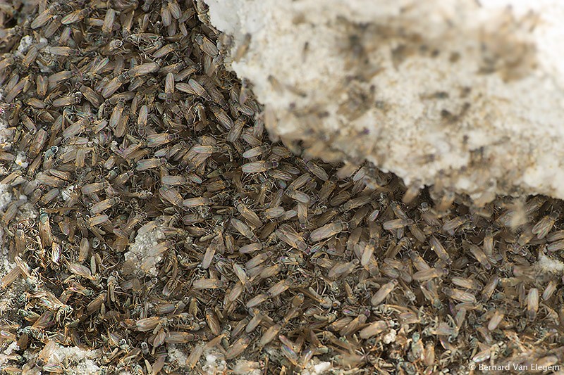 During the summer or early fall billions of Brine Flies occur along the shoreline of Great Salt Lake in Utah. While their numbers are intimidating, brine flies aren't interested in humans. They will get out of the way if disturbed, and they tend to stay close to the ground near the edge of the lake. Brine flies live most of their lives underwater. Their life cycle begins in the summer, when the female flies lay their eggs on the water surface. After the eggs hatch, the larvae graze near the lake bottom. They eat mostly cyanobacteria, but their diet also includes other types of bacteria, bottom-dwelling algae, diatoms, and detritus. They prefer to live in muddy areas or on bioherms rather than in sandy areas. After one to a few weeks (depending on the water temperature) the adults emerge from their pupal casing andsalt lakes, great salt lake, float to the surface. Adults live for only a few days, just long enough to mate and lay eggs. If food is plentiful and temperatures remain high, brine flies can complete two life cycles in one season. After the adult brine flies hatch, pupal casings are blown about by the wind. The brown casings pile up in often miles-long masses along the shoreline. In fact, the Utah Division of Wildlife Resources counted 7 billion pupal casings along just 6 miles of the Antelope Island causeway. That's more than the total number of human beings on the entire planet! And that's just a small part of the entire population occurring along the Lake... Decomposers such as bacteria and fungi break down the pupal casings and return their nutrients to the food web.