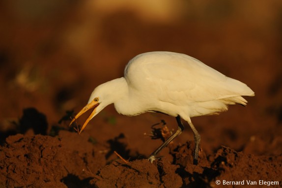This bird is feeding on earthworms on a freshly ploughed field. A group of cattle egrets were following the tractor, and were quickly feeding on the earthworms which had been brought up to the surface.