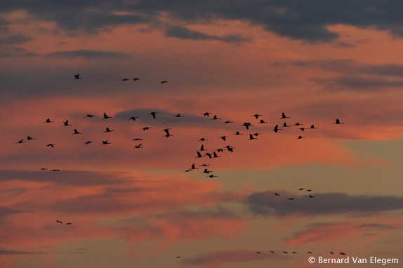 The Lac Du Der has become one of the most important roosting sites in Western Europe for the Common Crane during the migration periods. In November and in februari-march, up to 70.000 Common Cranes come to sleep at this huge artificial lake, which serves as a drinking water reservoir for the Isle de Paris. During the previous decades, the number of wintering birds kept on increasing. Nowadays the site holds also important numbers of wintering Cranes. Up to 10.000 Common Cranes are feeding during most of the winter in the fields and meadows around the lake.
