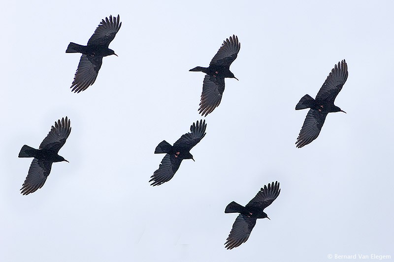 Flock of Red-billed Choughs in flight - Groep Alpenkraaien in vlucht - Pyrrhocorax pyrrhocorax