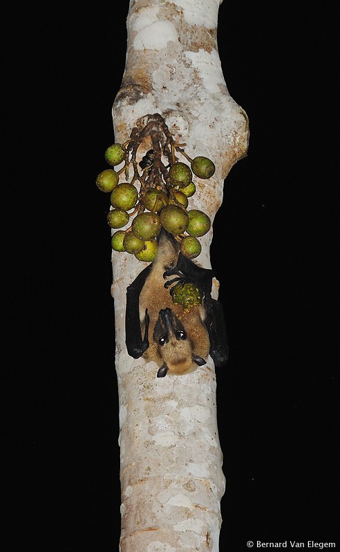 The species is very probably Pteropus neohibernicus, the Greater Flying Fox, but the identification has still to be checked with a specialist.