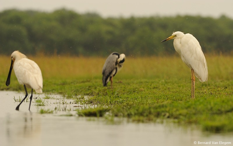 On the same image, one can see a Eurasian Spoonbill, Platalea leucorodia (left) and a Grey Heron, Ardea cinerea (middle).