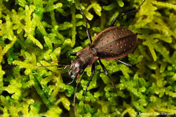Carabus irregularis is considered as one of the most typical stenotopic forest ground beetle species in Europe. It is mainly found in old growth forests, which have a local dark and cold microclimate and which have a rich forest structure. So they are often found in pristine or semi-natural forests with lots of dead wood and a varied horizontal and vertical forest structure. Although it does not occur on the IUCN Red List of threatened species, it occurs on many local country or regional Red Lists. Main reason for the fact that it is not a IUCN Red List species, is that in some French or Central European old growth forests, where large tracts of good habitat are still found, the species is still locally common. In Belgium, which has some historical records, the species is considered as extinct.