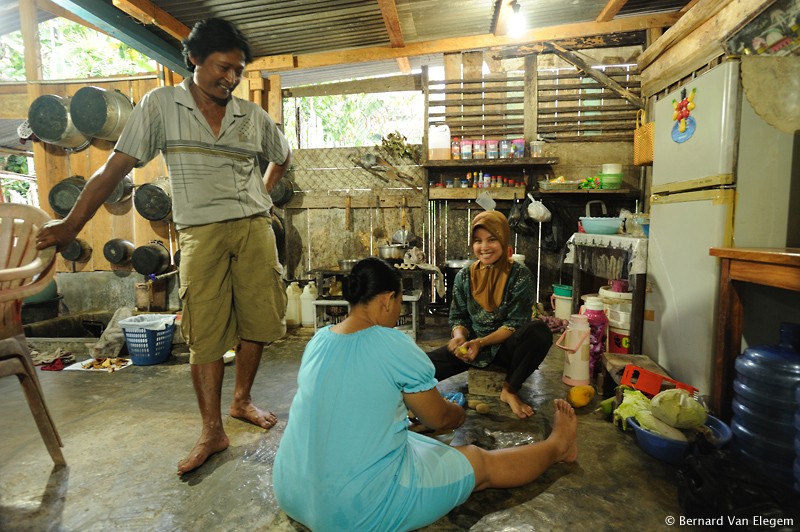 Jamil, his wife and daughter in the kitchen - Jamil, zijn vrouw en dochter in de keuken