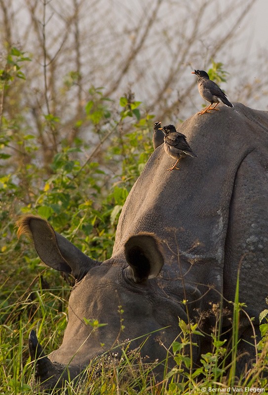 Acridotheres fuscus, Rhinoceros unicornis