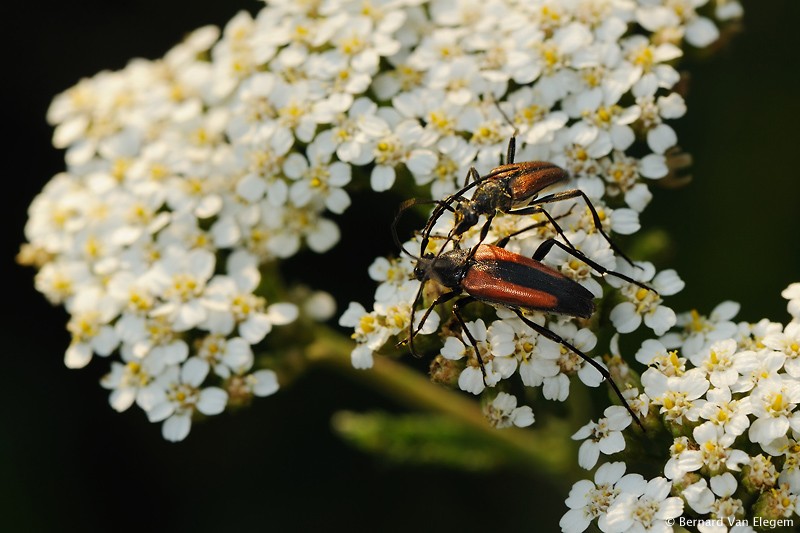 Mating attempt of longhorn beetle - Zwartpuntsmalbok - Stenurella melanura
