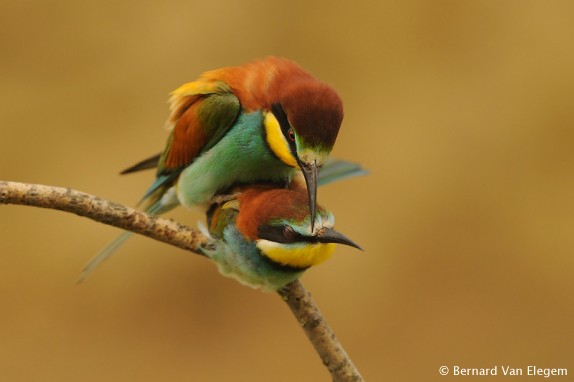 Mating European Bee-eaters - Parende Bijeneters - Merops apiaster