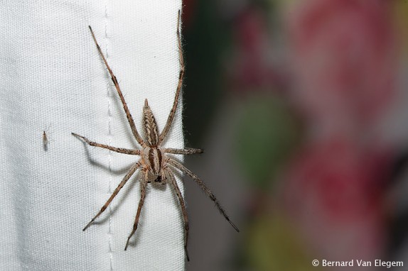 Spider preying on insects attracted by blacklight - Spin jaagt op insecten