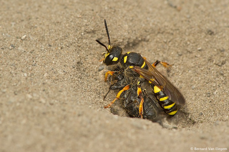 Weevil Hunting Wasp with prey, Digger Wasp - Gewone Knoopwesp met prooi, Grote Knoopwesp, Grote Snuittordoder - Cerceris arenaria