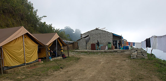 Our next stop higher up was Bompu Camp (1950 metres above sealevel), where we spent four days. This picture was taken at Sunderview, at an elevation of 2450 metres above sealevel.