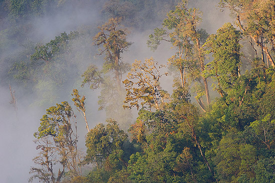 Eaglenest Wildlife Sanctuary is located in the West Kameng District, which lies in the Western part of Arunachal Pradesh. The Park is part of a huge pristine area on the border of Assam and Arunachal Pradesh, which is called the Kameng Protected Area Complex, which is an Elephant Reserve. South of Eaglenest, lies Nameri and more to the East, Sessa Orchid Wildlife Sanctuary and Pakhui Tiger Reserve conjoin the park. It is one of the most biodiverse regions of South Asia, where species of the Brahamputra plains meet the foothills and where vast pristine forest tracts are found from altitudes of a few hundred metres above sealevel till about 3500 metres above sealevel. Further North high alpine scrub, meadows and rocky areas are found at altitudes above 4000 metres. The Eastern Himalaya is characterised by very steep slopes and a very high annual rainfall, which explains the very lush vegetation in Eaglenest. We visited the park at the end of the dry season, when the rains starts to be more frequent. This is the best time of the year for song and territorial activity of the birds. As the vegetation is very dense and many skulking bird specialities occur within the part, it is advisable to visit Eaglenest during March - April. Later on, the rains start to get more frequent and heavier, and it becomes risky to visit the park, because of frequent road damage. The Park holds an amazing number of large mammals: Elephants are very common, and Gaur, Sambar, Black Bear, Leopard and Tiger are also found within the Park. A lot of much sought after and rare bird species are found within Eaglenest, such as the Rufous-Necked Hornbill, Ward's Trogon, Beautiful Nuthatch, Greater and Lesser Rufous-headed Parrotbills, and Fire-tailed Myzornis. No less than 8 species of Wren-babblers are found in the park, of which the Sikkim Wedge-billed Wren-babbler has the most restricted range. The Park became internationally famous, when a spectacular new bird species to science was described in 2006 by Ramana Athreya: the Bugun Liocichla. The bird, a Laughingthrush species, was named after the local tribe of the Bugun People, who live in the park.