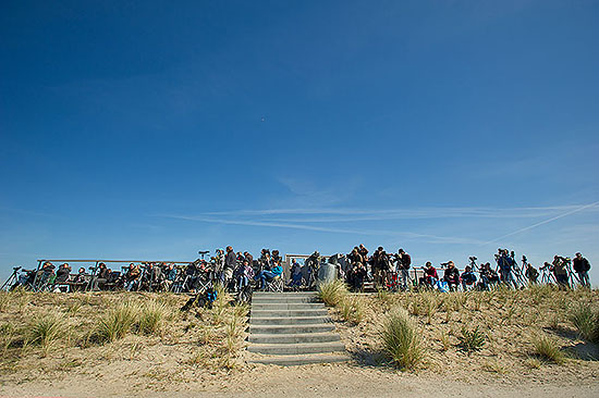 From the moment we arrived we were struck by the massive amounts of Common Swifts. An almost non-stop flow lasted during the entire day. On most of the migration days, I get a little bored around noon, as most of the birds are then so high one almost doesn’t notice them anymore. But on this day, the Common Swifts would keep on passing by till dark. It is very hard to describe the overwhelming feeling, but as far as would meet the eye over the land, small groups of Swifts could be seen all day long flying to the North. Towards the sea, over a small coastal area, the same scenario took place with almost constantly migrating birds! During the first hours of the day, the Common Swifts would often fly by below the dune we were standing on and sometimes they even flew in between the people! In the evening when temperatures went down, the swifts flew ridiculously low and close by again. No less than 24257 Common Swifts were counted that day!